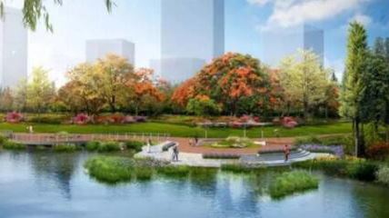 依托現狀地形地貌,打造親水平臺,結合用地規(guī)劃打造條狀小游園。