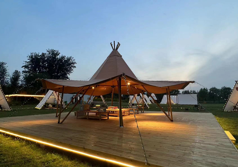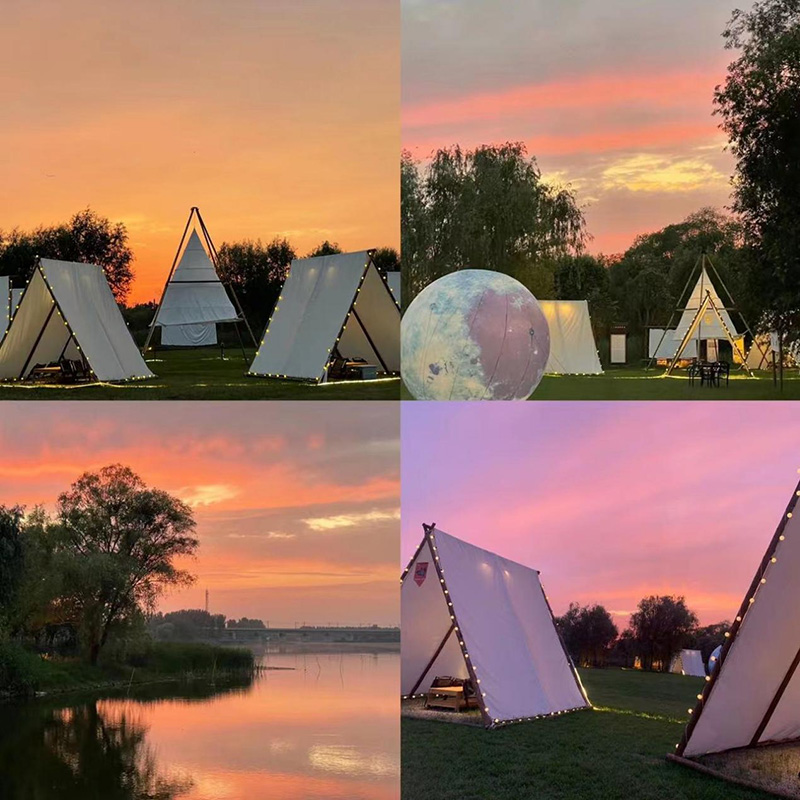 將現狀高爾夫練習場草坪區域改造成帳篷營地,供游客進行露營、觀星、野餐、篝火晚會等活動,區塊劃分帳篷搭建位,規(guī)范游客合理安排帳篷位置。設置露營野餐的服務點,提供售賣零食飲料和帳篷出租的服務。