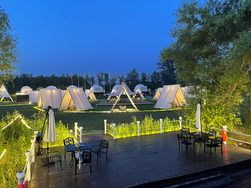 此區塊位于規(guī)劃地塊的東北角濱水區塊,該區塊項目設計意在配合度假酒店,加載精品化的休閑度假項目,打造精品度假體驗。其主要內設項目包括垂釣俱樂部、房車營地、篝火廣場、精品帳篷酒店、帳篷餐廳和露天燒烤園等等